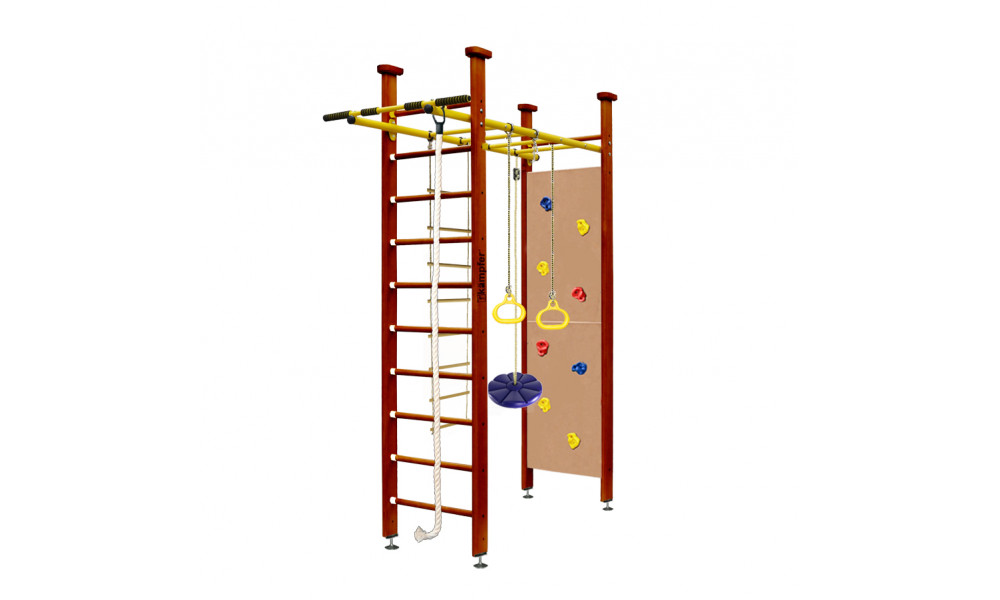 Домашний спортивный комплекс Kampfer Magic Trick. Конструкция выполнена из натурального дерева стойки и ступени, все края деталей немного скруглены обеспечивая большую безопасность для ребенка. Перекладины для навесного оборудования -металлические.